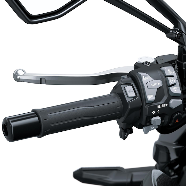 Développé par Kawasaki pour votre Z1100 (+SE) (2026), ces poignées possèdent une fonction d'économie de batterie automatique. Si la tension de la batterie chute pendant l'utilisation, les poignées s'éteignent et le voyant clignote.