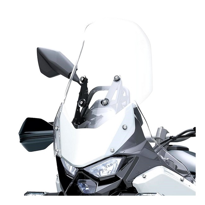Pour un meilleur confort de roulage et une protection accrue, Kawasaki propose cette bulle haute (+106mm par rapport à l'origine) incolore pour Kawasaki KLE500 (2026).
