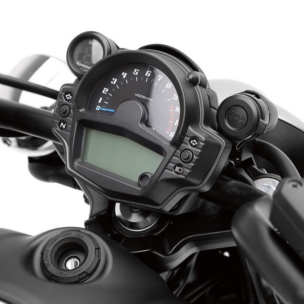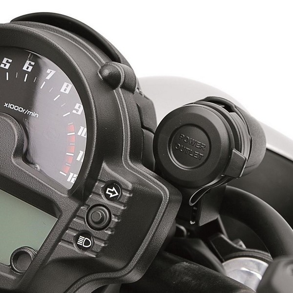 Kit prise 12 volts au format allume cigare avec son support pour une intégration parfaite sur le tableau de bord de votre Kawasaki Vulcan S (2015-2024).