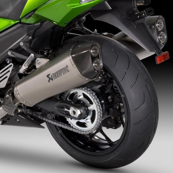 Gain en poids et en performances (puissance et couple) grâce à cette paire de silencieux d'échappement réalisé en titane par l'expert Akrapovic pour votre Kawasaki ZZR1400 (2012-2015).