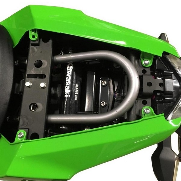 Pour éviter que votre antivol "U" ne se balade trop sous votre selle de votre Z650 / Ninja 650 (2017-2025) et Z650 S (2026), Kawasaki a développé un support spécialement conçu pour le maintenir.