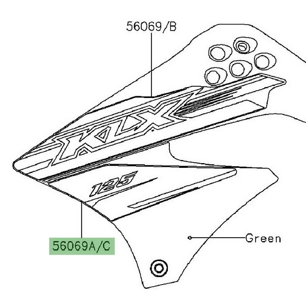 Sur les millésimes 2010 -> 2016 de la Kawasaki KLX 125, les autocollants inférieurs des écopes latérales sont différents.
