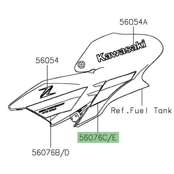 Autocollant décoratif arrière pour habillage de réservoir de Kawasaki Z900 (2020-2024) vendu à l'unité.