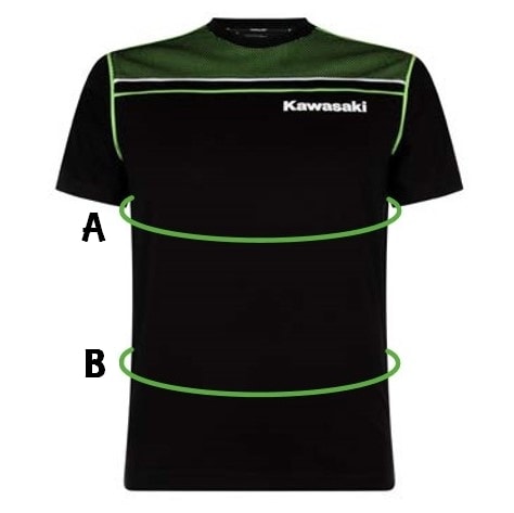 • Tour de poitrine (A) : Mesurez le tour de la partie la plus large de votre poitrine, en gardant le mètre ruban le plus horizontalement possible.