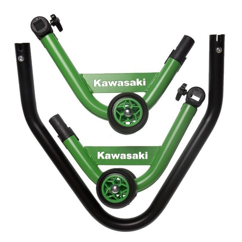 Béquille d'atelier arrière Prémium aux couleurs Kawasaki pour assurer efficacement et avec style l'entretien et le stockage de votre moto.