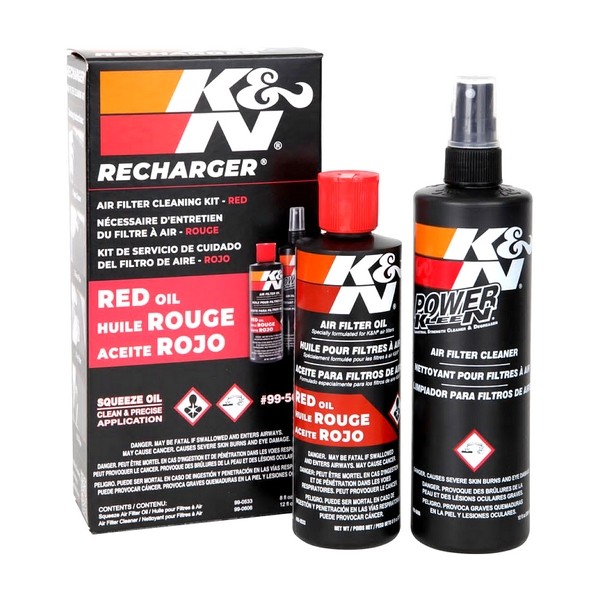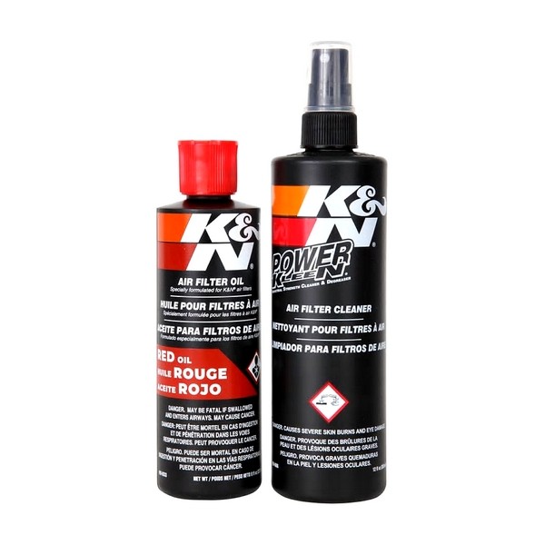 Le kit est livré avec le nettoyeur de filtre à air Power Kleen K&N d'une contenance de 350ml et l'huile de filtre à air de K&N d'une contenance de 250 ml.