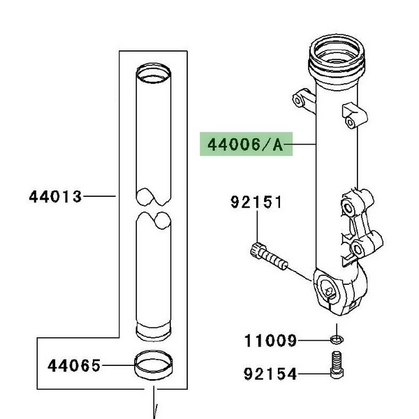 Fourreau de fourche, gauche ou droite, pour les Kawasaki Er-6n (2009-2011), non-équipées du freinage ABS.