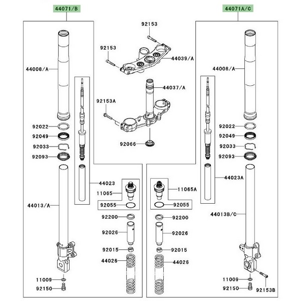 Pour les millésimes 2007 -> 2012 de la Kawasaki Z750, la fourche peuvent avoir plusieurs références.