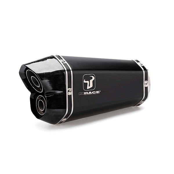 Sa forme conique hexagonale et son embout confectionné en véritable carbone forgé lui confère un style sortant des sentiers battus. Pour le reste, le silencieux profite d'un laquage céramique noir mat satiné haute température, d'un logo IXRace gravé au laser et sera livré avec cache de protection de la chambre catalysée d’origine !