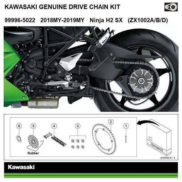 Kit chaîne d'origine pour Kawasaki Ninja H2 SX et Ninja H2 SX SE (2018-2025).