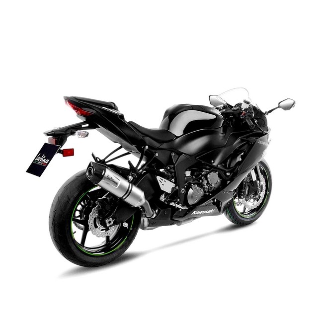 Pour votre Kawasaki Ninja ZX-6R (2019-2025), LeoVince propose ce silencieux LV One Evo à la finition Inox du plus bel effet et embout carbone mat.