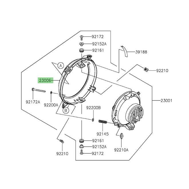 Cerclage d'origine pour optique de phare avant de Kawasaki Eliminator 500 (2024-2025) et sa version SE, peint à la teinte exacte de celui monté d'origine sur votre moto.