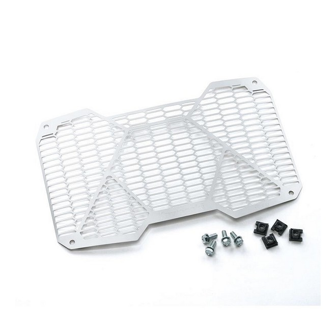 Prenez soin de votre radiateur, et indirectement de votre moteur, avec cette grille de protection de radiateur en acier inoxydable avec logo Kawasaki.