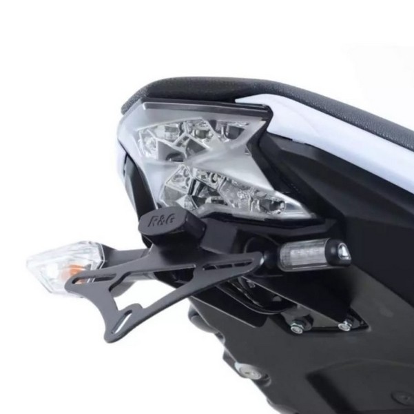 Support de plaque R&G Racing pour Kawasaki Z650 (2017-2025) et Ninja 650 (2017-2025), fabriqué en acier inoxydable thermolaqué pour plus de robustesse et une meilleur durée dans le temps.