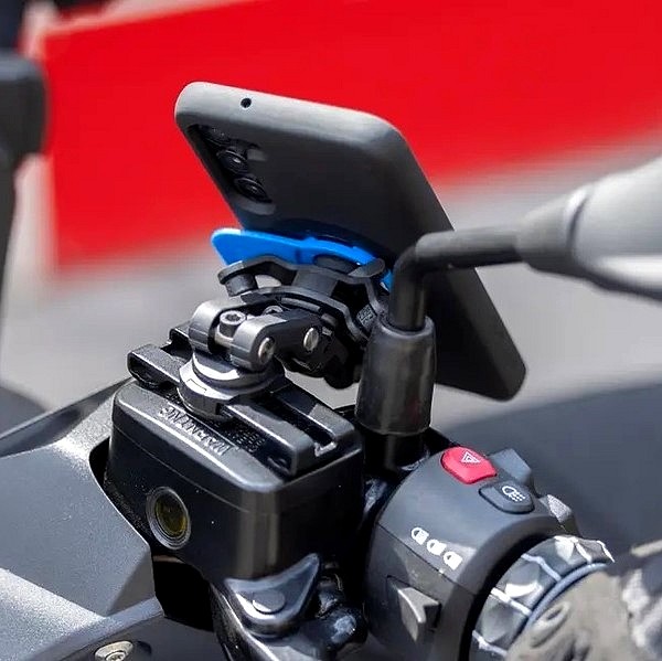 Grâce au mécanisme de verrouillage breveté à deux étapes, vous pouvez être sûr que votre smartphone restera solidement fixé pendant que vous roulez, quelles que soient les conditions. Pour faire simple, le support est fixé au réservoir de liquide de frein/embrayage à l'aide de vis autobloquantes.