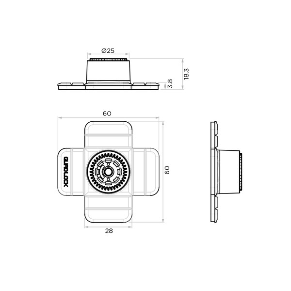 Ultrarésistante, la fixation est assurée par un adhésif 3M™ (usage unique et non réutilisable). La base adhésive flexible à 4 languettes peut être pliée pour correspondre ou épouser quasi parfaitement la surface incurvée.