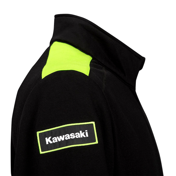 Poches latérales zippées, ourlets et poignées côtelés, col montant, voilà les détails pratiques dont profite ce sweat zippé homme de la collection Kawasaki Sports 2026.