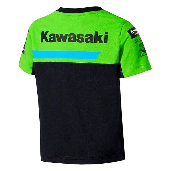 T-shirt enfant fabrication 77% coton et 23% polyester aux toutes nouvelles couleurs du team Kawasaki engagé en WorldSBK sur la saison 2026.